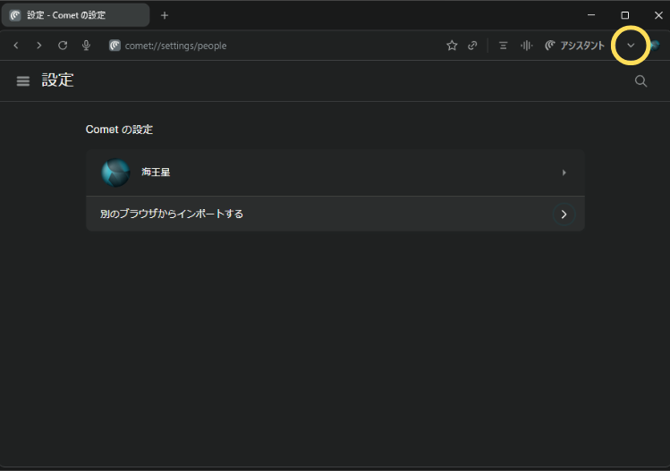 AI機能を使うための専用の画面を、この記事では正式名称である「Comet Assistant(コメット・アシスタント)」と呼びます。